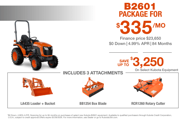 TAKE ADVANTAGE OF OUR EXCLUSIVE OFFERS ON SELECT KUBOTA PRODUCTS.